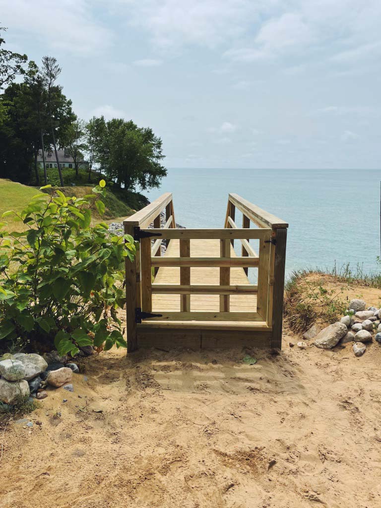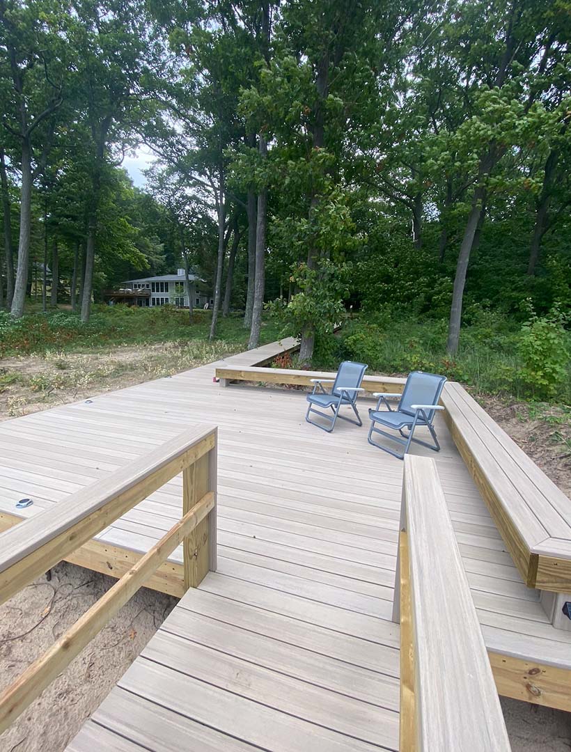 Waterfront Solutions is your premier choice for Michigan deck and outdoor stair builders. That being said, we also offer services for seawalls, retaining walls, native dune grass planting, docks, and more!
